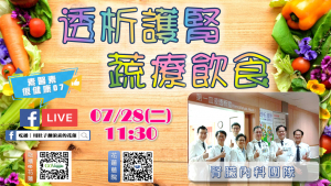 【素醫素很健康07】透析護腎 蔬療飲食 還記得上周五的直播中 賴醫師就是來自腎臟內科嗎? 本次直播隆重邀請到整個腎臟科團隊 來跟我們分享如何"顧腰子" 在書中除了食譜之外 更詳細列出了每一道菜所包含的各種營養成分 也會教大家認識腎臟疾病 腎友們該如何注意飲食 #今天來賓還包含了小兒腎臟科醫師唷! #真的是全方位 #每道菜看起來都好好吃 #營養科的強力支援 #素醫素很健康 #透析護腎_蔬療飲食 #健康新生活 #營養素素看