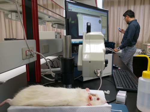 Micron IV retinal image microscope is a convenient system for monitoring rat and mouse retina. This system can record bright field images, fluorescein and Evan’s blue angiography, and fluorescent image. In this training course, we taught the users to operate this system and to practice bright field and fluorescent imaging.