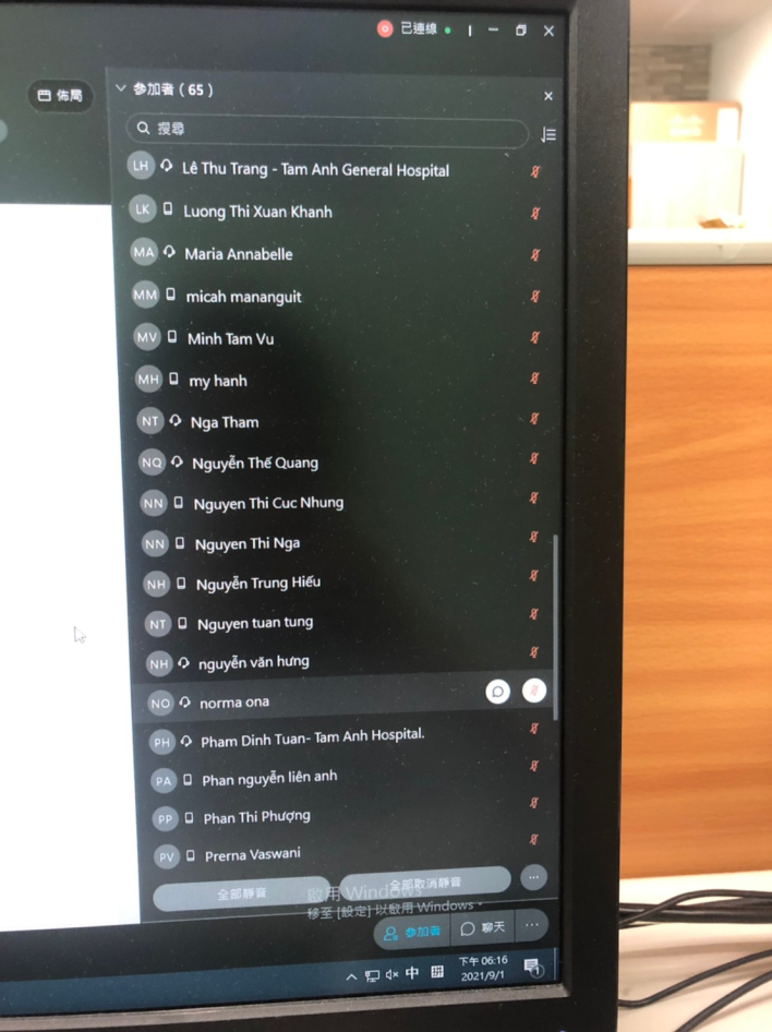 照片說明:2021/09/01(三)新南向造血幹細胞移植遠距進階跨國講座: Management of Cytomegaloviral (CMV) Infection in HSCT活動現場。