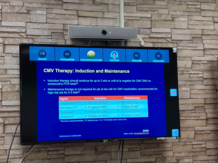 右上圖:新南向造血幹細胞移植遠距進階跨國講座: Management of Cytomegaloviral (CMV) Infection in HSCT教學內容。