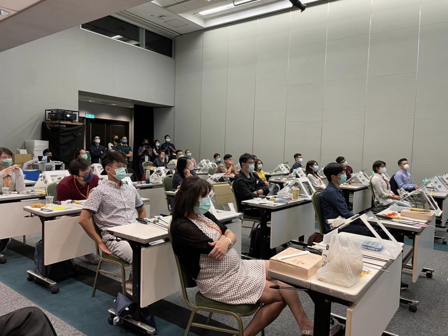 再來,本中心龐渂醛主任也受大會邀發表兩個微創手術題目:(1)單孔腹腔鏡卵巢囊腫切除術,現場以訓練箱和影片的方式教導全台灣各大院總醫師或新進年輕主治醫師; (2)達文西骨盆底重建手術-用英文分享自己的經驗給世界各國的婦女泌尿科的醫師們。