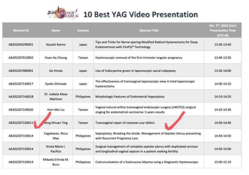 最後,本院住院醫師停寧萱在丁部長的指導下獲得大會頒發最佳十大手術影片報告,講述的是剖腹產後傷疤有関之陰道出血之修補手術,在各國好手的競爭下真是十分難得。