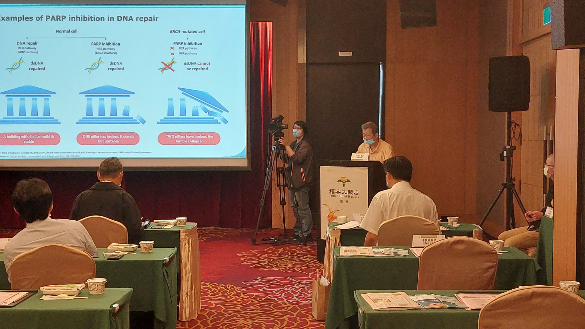 近十年來內膜癌和卵巢癌的發生逐漸增加,而且有越來越年輕就發病的趨勢,本中心呼籲各位女性應該要常常注意自己的健康狀況。首先,門諾醫院婦產科主任廖基元分享了一個子宮內膜癌的個案因未生育需要保留子宮而接受保守治療。廖主任叮嚀這種情況要謹慎評估其病況適不適合,因為這個案後來治療效果不佳而且惡化。接著,台大醫學院婦產科魏凌鴻教授也透過視訊的方式現場直播為大家整理了卵巢癌標靶藥Niraparib運用在開完刀之後作為第一線治療的最新臨床研究結果。醫藥科技不斷進步,Niraparib是一種針對聚ADP核糖聚合酶(PARP)抑制劑,可讓癌症無法修復而凋亡,用於皮卵巢癌的療效令人振奮。尤其是對有抑癌基因BRCA1或BRCA2突變的病人,它可以減少60%的復發風險,真是病患的福音。花蓮慈濟醫院婦產部產科主任魏佑吉則為大家報告了Niraparib運用在復發性卵巢癌的個案及經驗。慈濟醫院陳盈希醫師則為大家分享達文西手術運用於婦癌治療和手術影片示範。比起傳統剖腹式手術,達文西手術出血和併發症少、出院天數短,其治療效果一樣好。透過螢光標記(ICG)和特殊影視系統,可以讓手術醫師精準地切除淋巴結以便精準地做癌症分期,這是子宮內膜癌手術治療中近十年來重要的進展。
