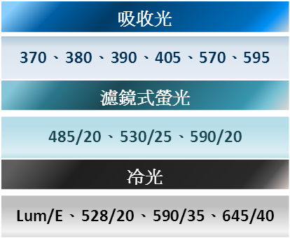 可適用光源種類及波長如下: