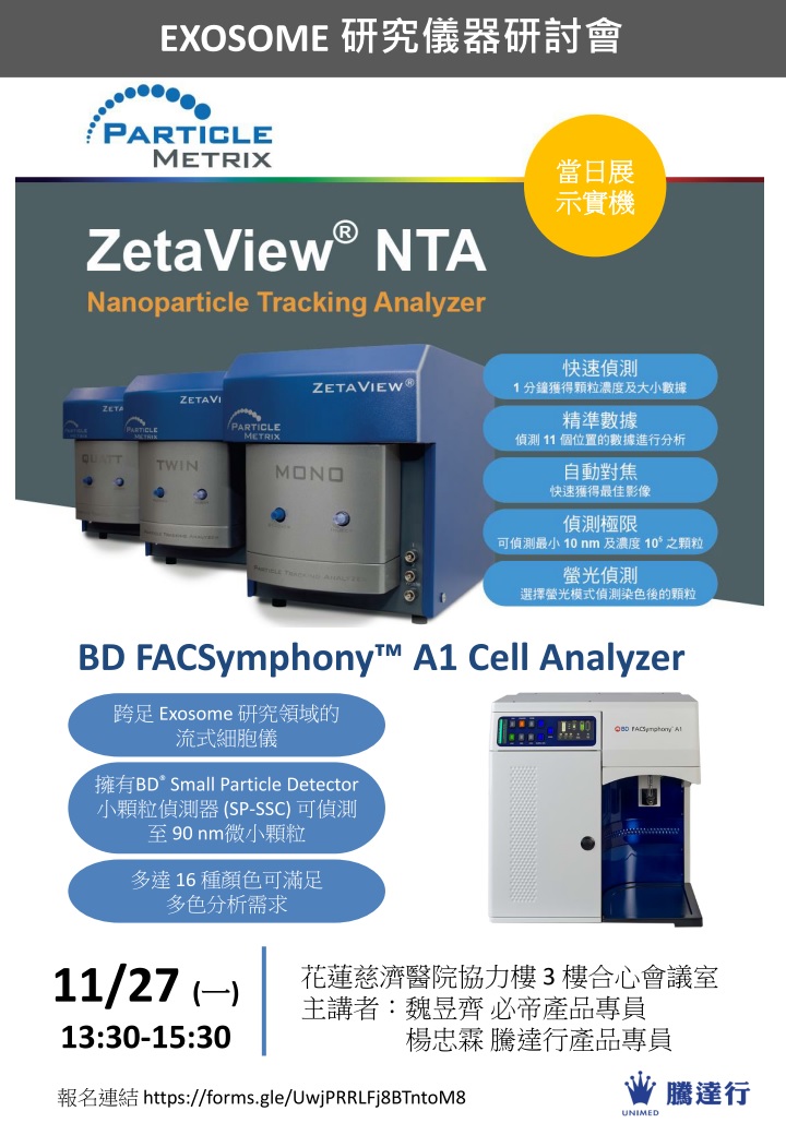 | 113/03/12 | Exocounter全自動外泌體分析儀介紹 | 台灣希森美康 行銷部 Phil Ku 弘晉有限公司 產品專員 Kira Shih |