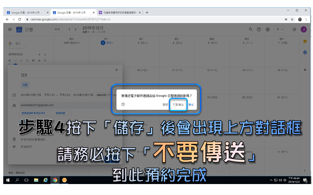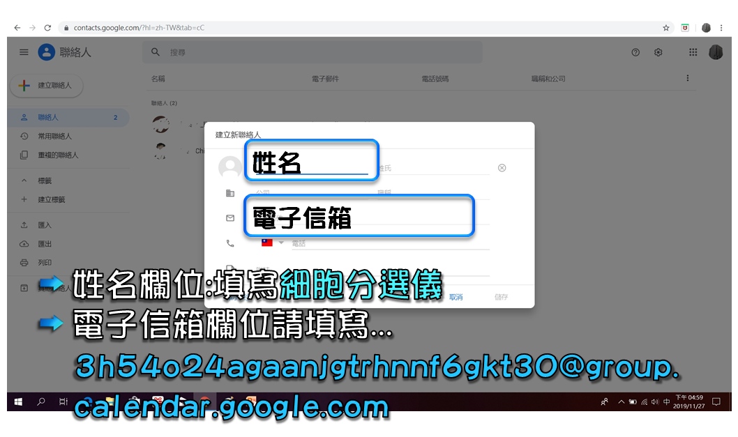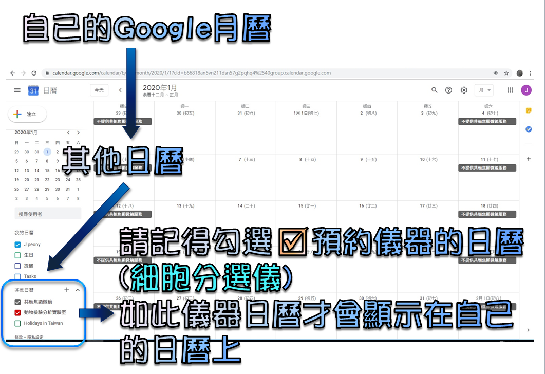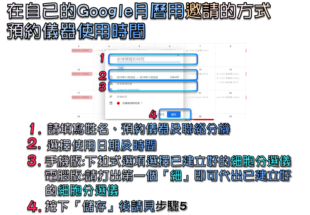 新增流式細胞分選儀所需之Google日曆電子郵件信箱