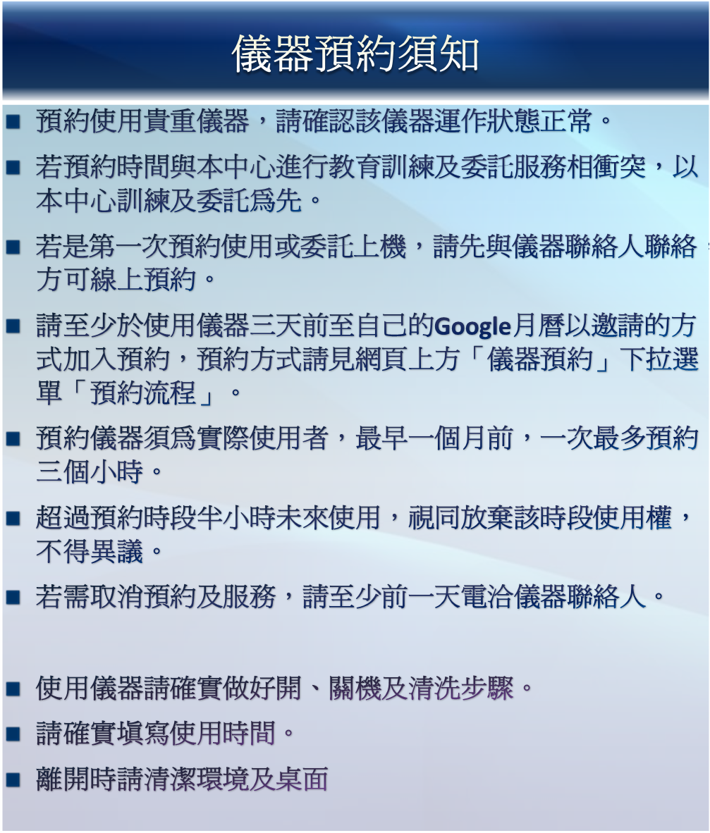 儀器預約須知