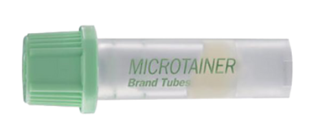 血清(SST Tube 桔黃管)、血漿(Heparin淡綠管)。 幼兒或困難抽血者檢體量1 mL以下者,請用特殊容器 Heparin Microtainer (綠色小試管)。檢體應避免溶血。 |