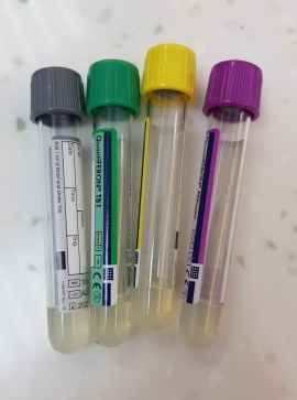 IGRA專用試管組,本院檢體請於正常白天上班日(週一至週四)採檢,並於每日16:00前送檢至檢驗科。國定假日與國定假日前一天暫停收件。 他院代檢若無法立即送達本院,採血後未培養檢體8小時內以室溫盡速送至實驗室。若已培養檢體以2-8℃冷藏配送並於轉檢單上註記已培養。