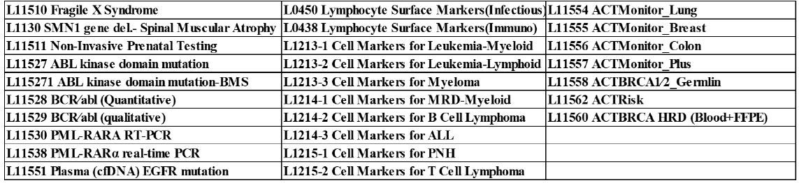 【分子生物特殊檢驗】因檢體保存時效與宅配外送單位暫停營運,下列特殊項目最後收件時間與恢復收檢時間為: