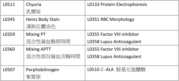 公告編號1: 停用【檢驗醫學科】健保醫令代碼20項之替代醫令