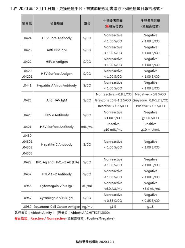 執行機台:Abbott Alinity i (原機台:Abbott ARCHITECT i2000)