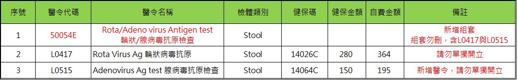 (含L0417 Rota Virus Ag 輪狀病毒抗原與 L0515 Adenovirus Ag test 腺病毒抗原檢查)