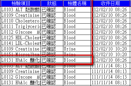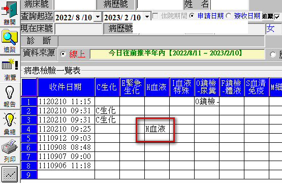 自原生化檢驗類別(C),調整至血液檢驗類別(H)中,報告查詢方式如下圖