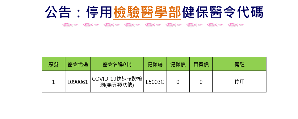 公告編號13:停用【分生檢驗項目】L090061 COVID-19快速核酸檢測(第五類法傳)