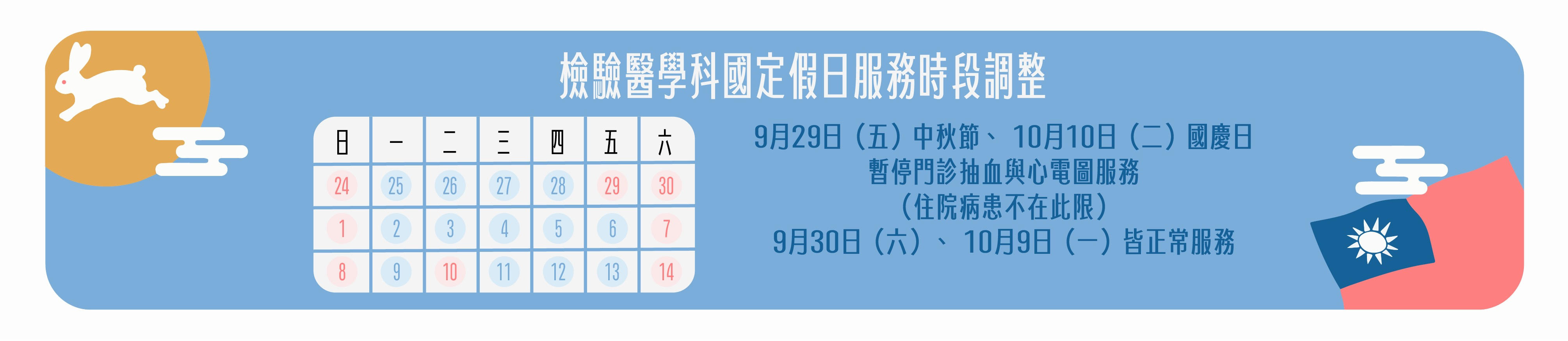 9/29(五)中秋節與10/10(二)國慶日