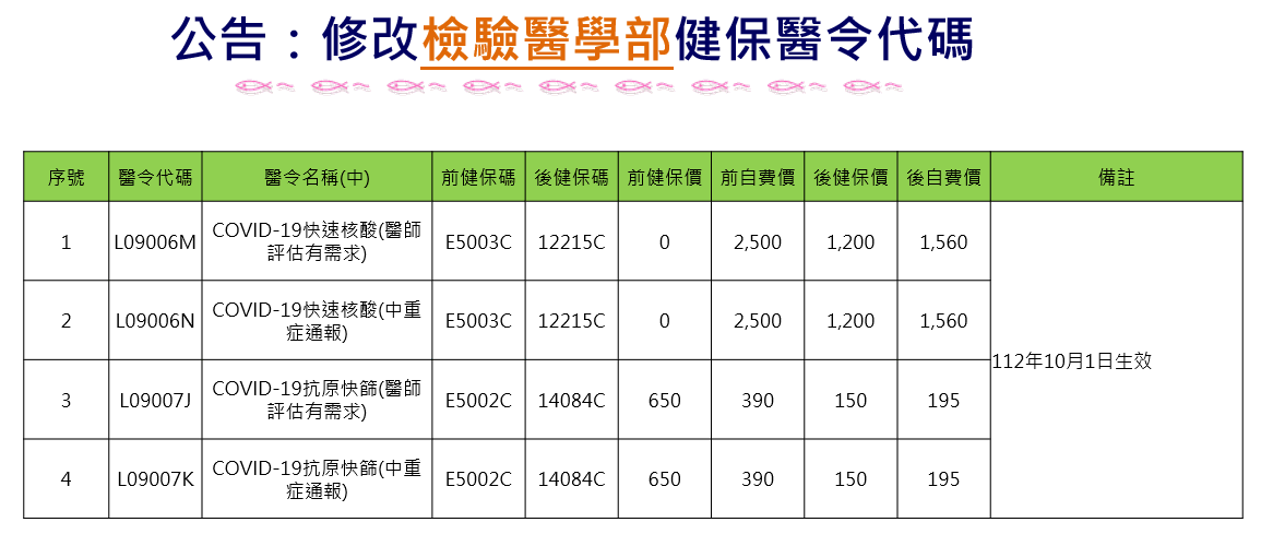 公告編號56:新增【檢驗醫學科】健保醫令代碼-「L09006M COVID-19快速核酸」等四項