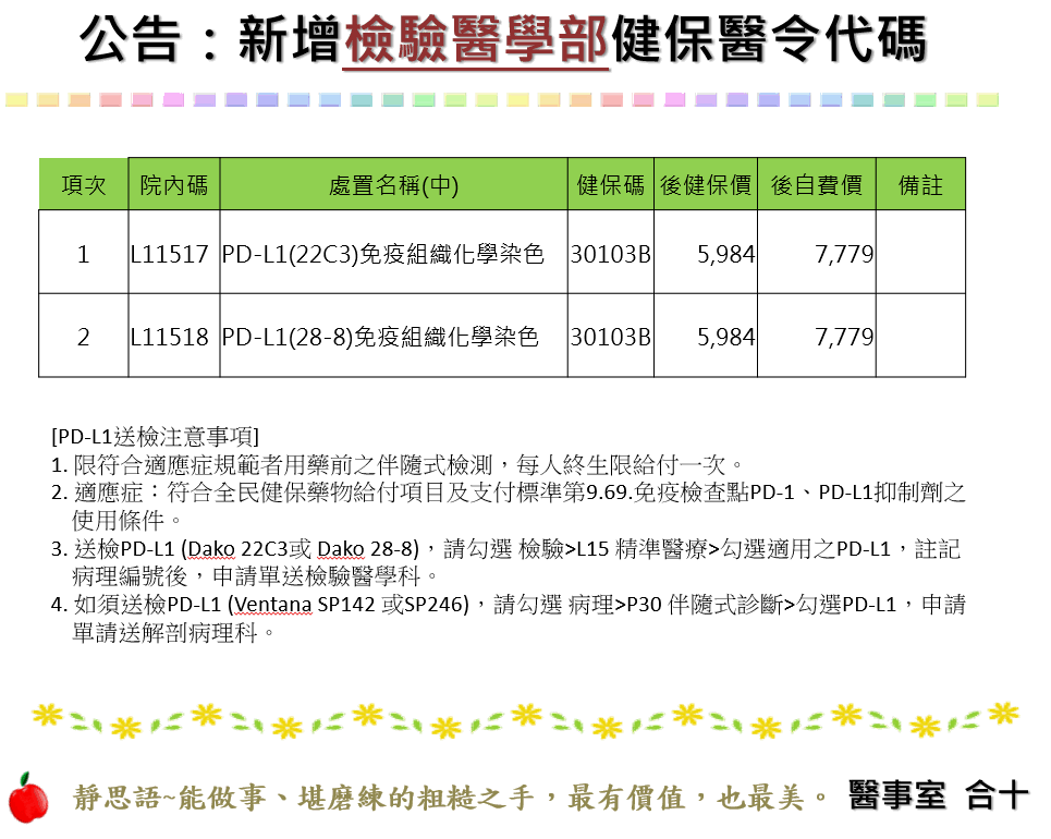 公告編號15:新增【檢驗醫學部】健保醫令代碼