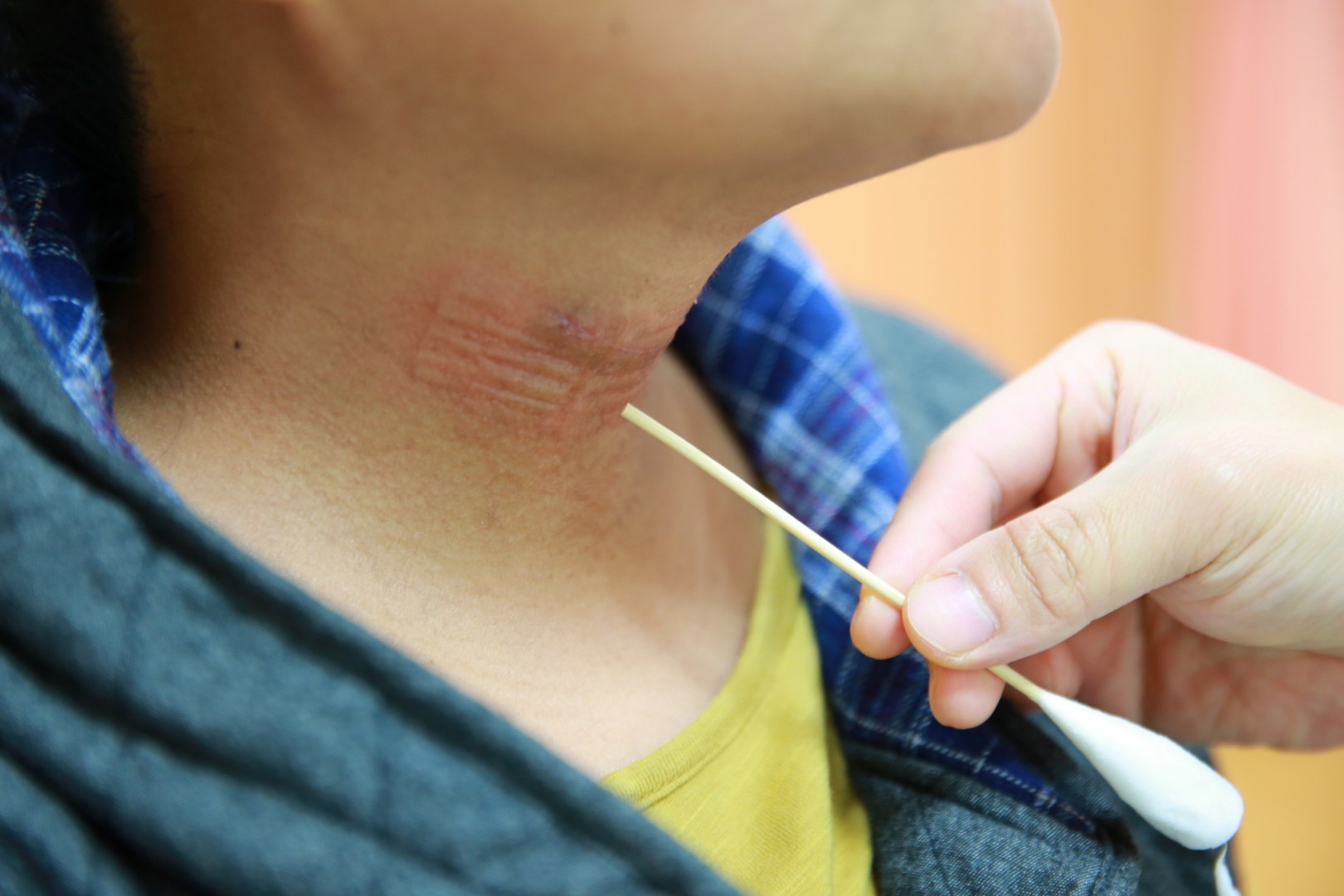 花蓮慈濟醫院神經脊椎微創外科主任洪祥益指出,楊小姐脖子上的傷口小到幾乎看不見。