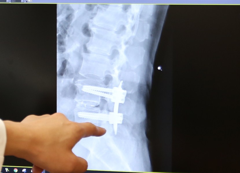 用在改善腰椎滑脫的腰椎融合手術,須植入鋼釘與支架來穩定脊椎。