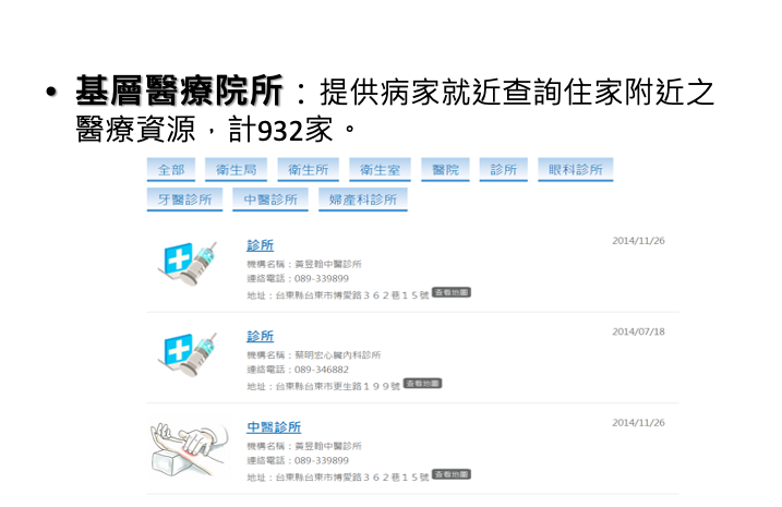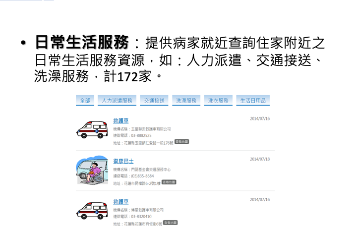 本計畫由經濟部經費補助,於2013年5月開始模組設計,對象為台灣東部的居家末期病患,現已進行資料庫建構及模組測試、人員訓練等作業,於2013年9月正式推動,並將服務範圍拓展到台東及嘉義大林,與台東聖母醫院及大林慈濟醫院合作。
