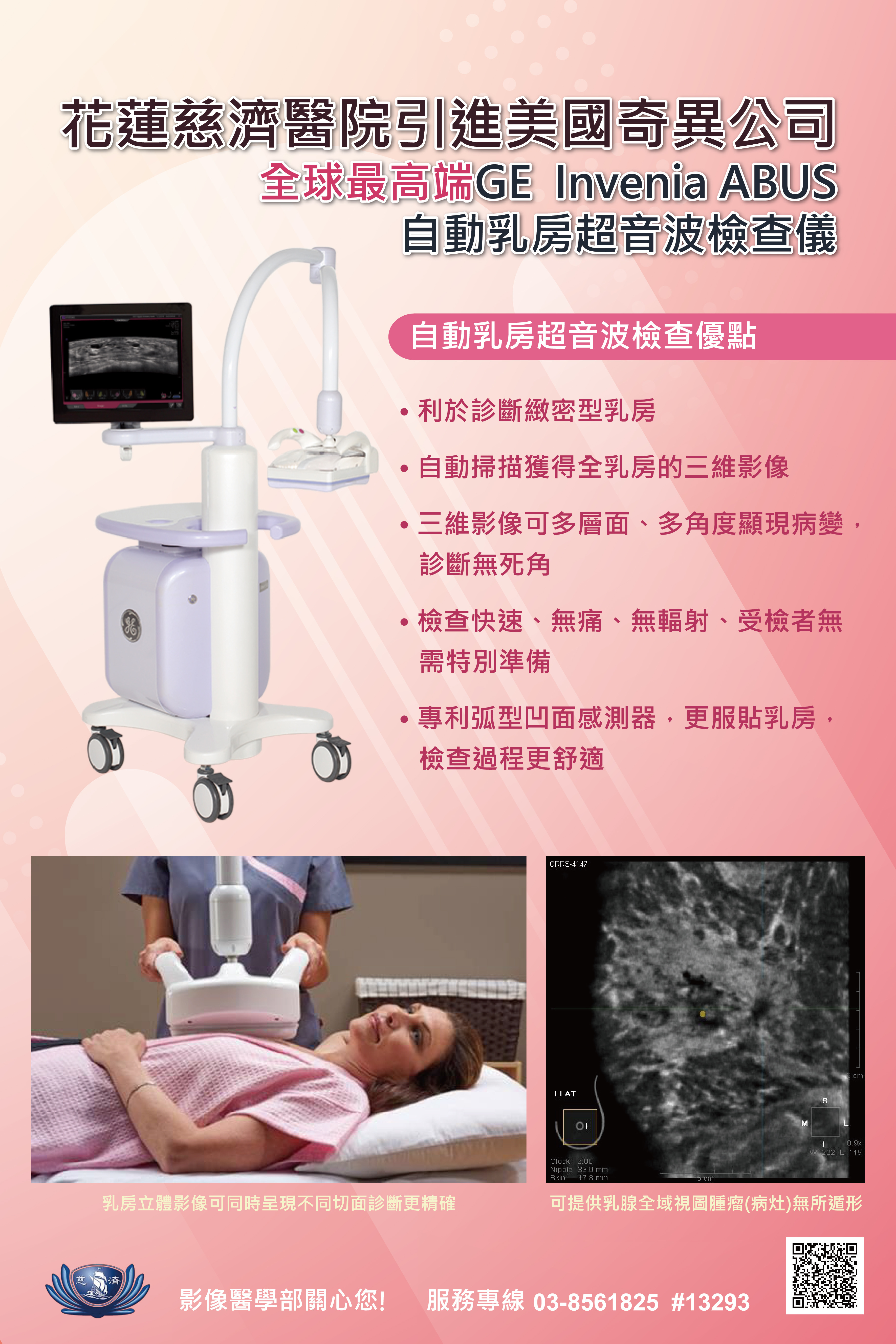 花蓮慈濟醫院引進美國最高端GE Invennia ABUS 自動乳房超音波檢查儀
