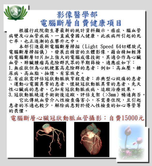 上一篇文章: 自費項目(請洽預防醫學中心)