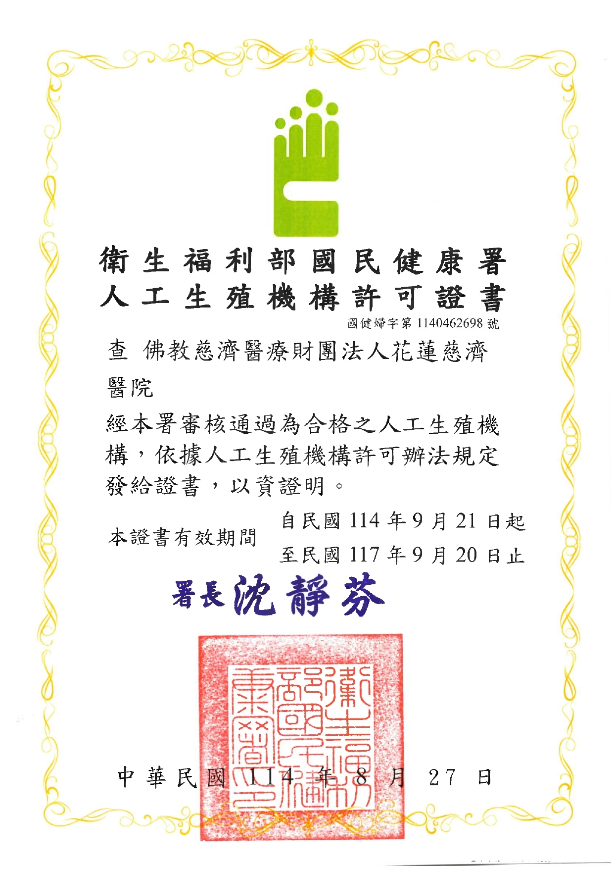 衛福部國健署認證合格之人工生殖機構