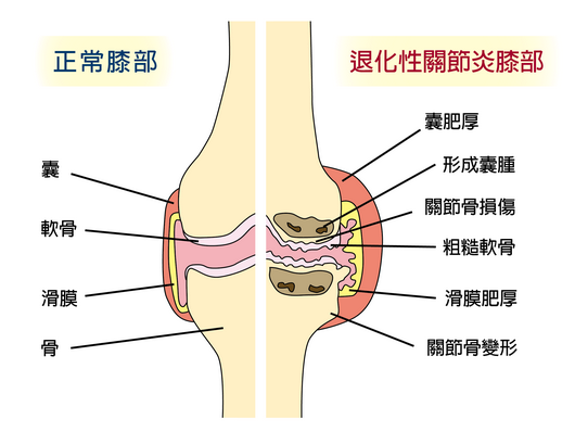 退化性關節炎是膝關節疾病中最普通的一種,跟年齡老化有直接的關聯,關節軟骨受到傷害及磨損後會導致發炎積水、關節疼痛腫脹、活動度受限及變形,最終使得關節軟骨完全破壞,只能接受人工膝關節置換術治療。