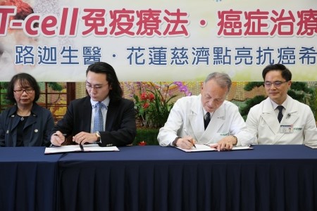 隨著醫療科學的演進,許多癌症不再是不治之症,除了傳統手術、放射及化學等治療之外,在衛福部公布「特定醫療技術檢查檢驗醫療儀器施行或使用管理辦法」(特管辦法)之後,讓許多癌症患者及家屬多了新的選擇。3月21日上午,花蓮慈濟醫院與路迦生醫股份有限公司簽訂合作約定,共同推動T細胞免疫療法來治療癌症的方式。 有品質的醫療,就是要以人為本。慈濟醫療財團法人執行長林俊龍表示,從病人的角度出發,治療疾病不光是去除病灶,治療後的生活及生活品質,對病人乃至於整個家庭都有很大的影響,現代醫學越來越進步,我們剛剛孰悉器官移植,現在又多了細胞療法,在傳統的治療方式之外,如果能夠藉由結合細胞療法,提供更完整全面系的治療,對病人來說是一大福音。 路迦生醫總經理唐稚超表示,路迦生醫2014年就與日本國家癌症中心研究團隊合作,進行癌症免疫細胞治療的臨床研究,2015年將「自體活化T淋巴球技術」完整轉移至台灣,這次很開心有機會能與花蓮慈濟醫學中心合作,幫助病患恢復有品質的生活。花蓮慈院院長林欣榮也表示,花蓮慈院醫療團隊在精準醫學與細胞治療臨床試驗上有豐富的經驗,除了之前的巴金森、中風疾病等,惡性腦瘤的治療也很有心得,希望能結合路迦生醫在免疫細胞培養技術及經驗,共同為癌症病患點亮新的希望之光。 現場也邀請了曾經接受過傳統療法合併T細胞免疫療法治療肝癌成功的王先生分享。 王先生表示,2016年八月在一次定期檢查中發現罹患肝癌末期,自己在當時在醫師的建議下切除了左肝,沒想到短短兩個月後就復發,在右肝出現腫瘤,後來進行了肝栓塞治療,十一月再次復發,十二月至隔年一月再進行包含質子治療在內的其他療法,但是出現嚴重副作用,當時的身體狀況已經無法再接受開刀手術。 「積極配合團隊治療很重要。」在輾轉了解了癌症的免疫療法之後,2017年一月王先生開始接受十二次療程的T細胞治療,過程中無副作用產生,整體精神及狀態變佳,且腫瘤顯著縮小。同年六月與兒子肝臟配對成功,進行肝移植手術,手術成功並維持高生活品質。王太太說,身邊也有很多朋友因為肝癌在短短幾個月,不到兩年就過世了,但是丈夫不只是現在恢復正常生活,過陣子還打算出國散心,好好享受這重新找回的美好人生。 花蓮慈院幹細胞與精準醫療研發中心主任李啟誠表示,癌症治療是一整個過程,不是說開刀、吃藥馬上就會好,所以,過程中要因應病人的狀況、疾病的症狀,可能會加上化學藥劑治療、放射線治療、標靶藥物治療...等,去調整出最適合的方式,而免疫療法就是一個新的選擇,而且T細胞是人自體擁有的,所以,沒有排斥或其他嚴重副作用的疑慮,反而還有機會減輕其他藥物帶來的副作用。 在肝癌病友王先生、醫療及研發團隊與花蓮鄉親的見證下,林俊龍執行長、林欣榮院長與路迦生醫總經理唐稚超、研發長蘇佩芬,共同簽下合作約定,希望在特管法的開放項目內,盡最大的可能幫助末期癌症患者,重新找回有品質的生活,有希望的人生。