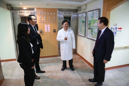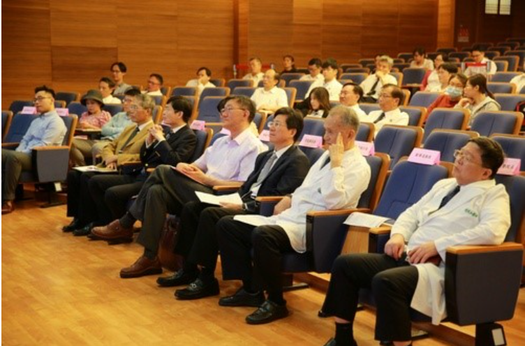 右圖:花蓮縣衛生局局長李宏滿(右三)、慈濟醫療法人林俊龍執行長(右二)與花蓮慈院名譽院長陳英和(右一)都到場,針對未來開放的臨床應用法規及經驗共同討論分享。