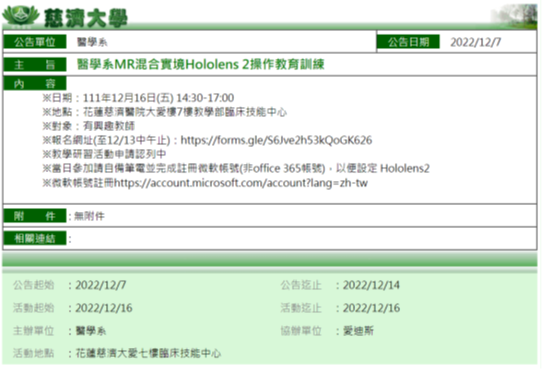 ※當日參加請自備筆電並完成註冊微軟帳號(非office 365帳號),以便設定 Hololens2