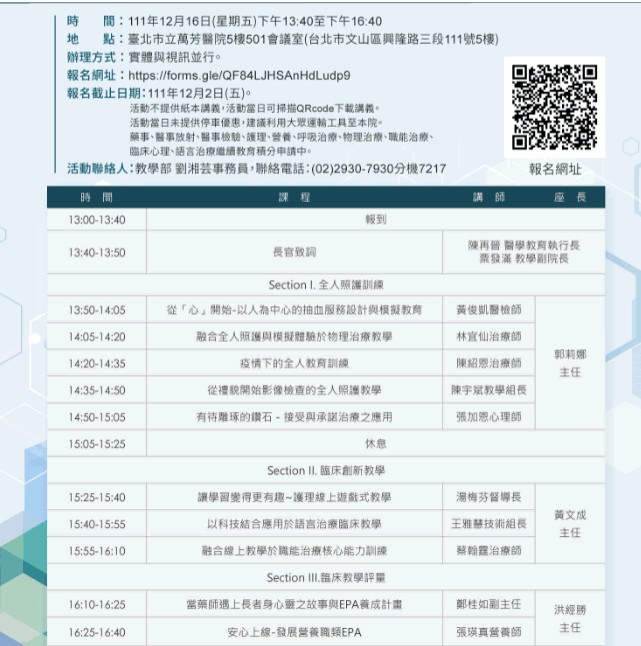 12/16(五)臺北市立萬芳醫院「111年醫事職類全人照護暨教學創新成果分享會」