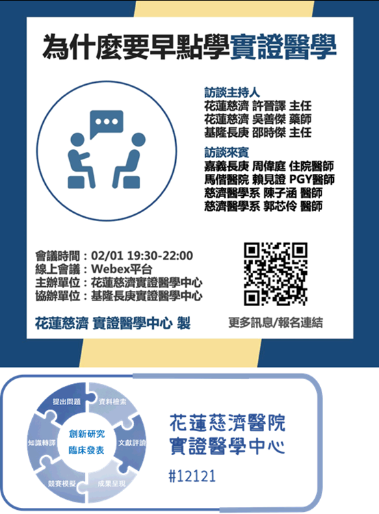 112.02.01(三) 19:30 為什麼要早點學實證醫學座談會,歡迎報名!!(報名人數即將額滿)