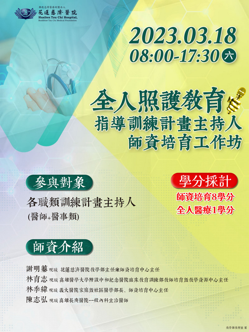 112/03/18(六)全人照護教育指導訓練計畫主持人師資培育工作坊-師資培育中心
