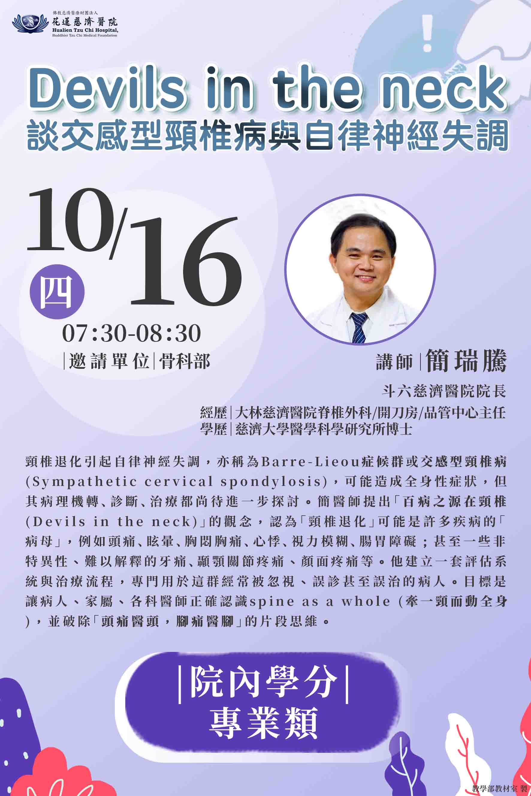 114.10.16 全院學術演講-Devils in the neck談交感型頸椎病與自律神經失調-簡瑞騰院長