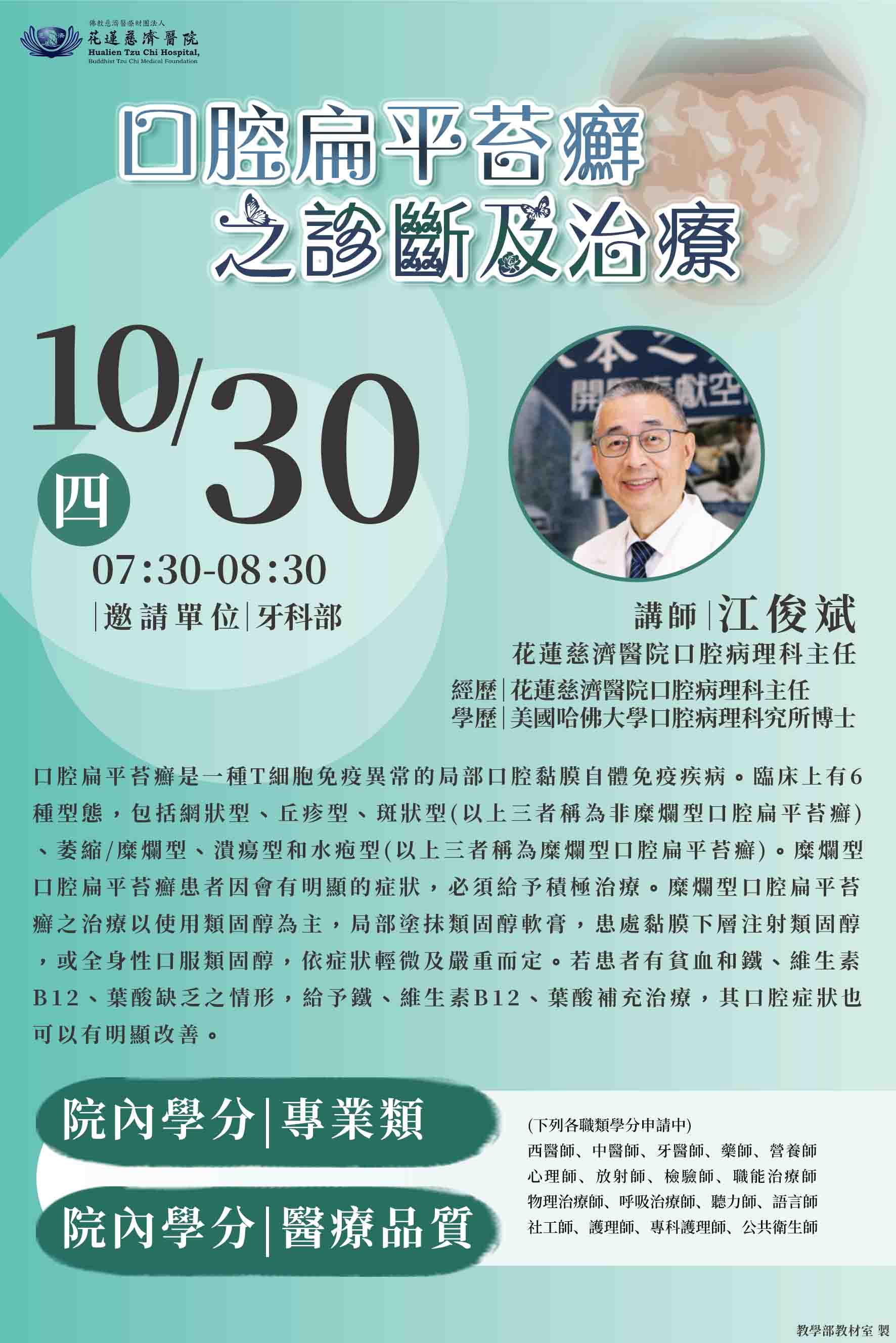 114.10.30 全院學術演講-口腔扁平苔癬之診斷及治療-江俊賓主任
