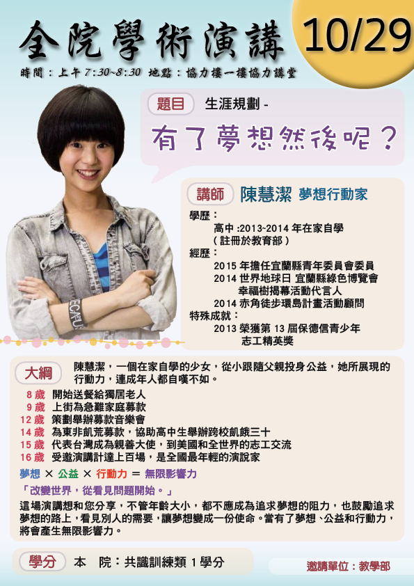 104.10.29【全院學術演講】有夢想然後呢? |陳慧潔 講師