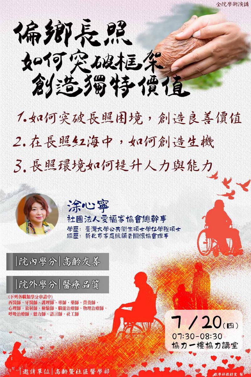 112/7/20(四) 全院學術演講-偏鄉長照如何突破框架創造獨特價值-涂心寧總幹事
