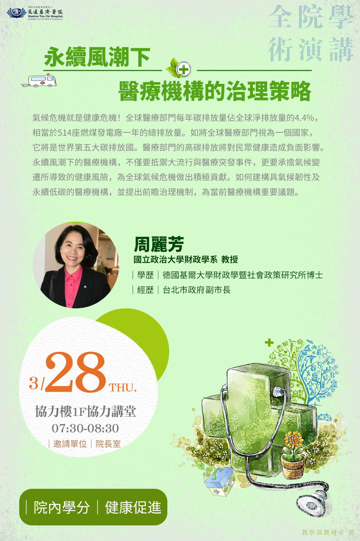 113.03.28 全院學術演講-永續風潮下醫療機構的治理策略-周麗芳教授