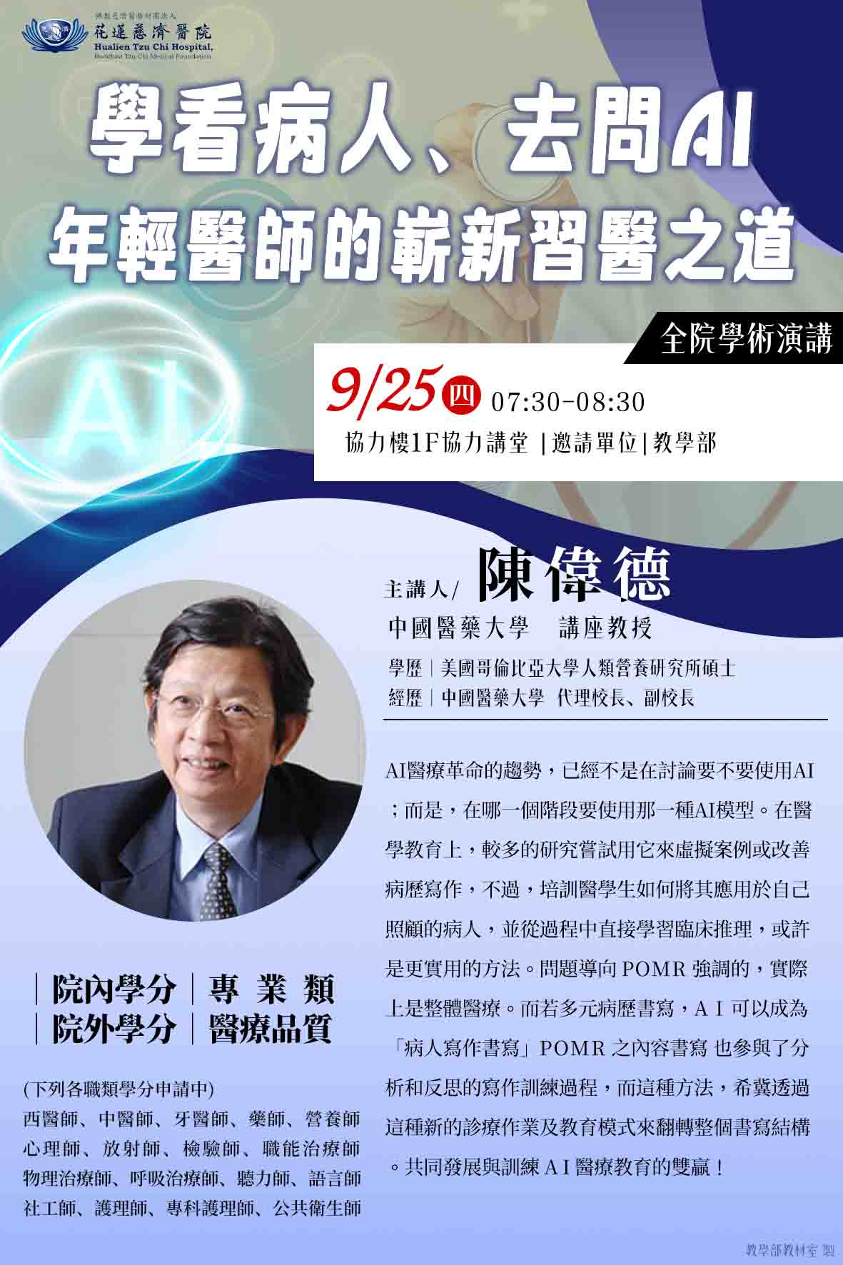 114.09.25 全院學術演講-學看病人、去問AI 年輕醫師的嶄新習醫之道-陳偉德教授