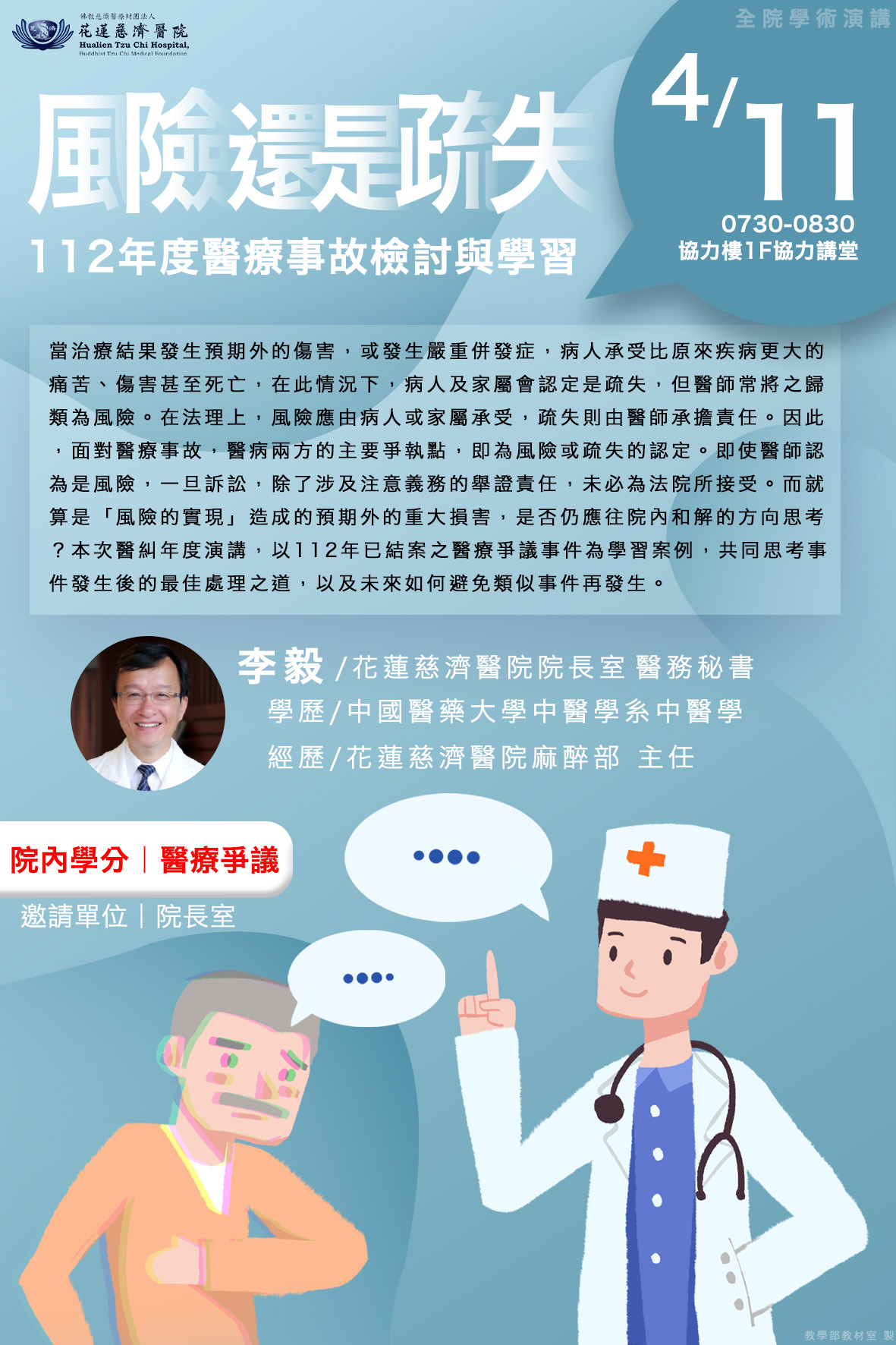 113.04.11 全院學術演講-風險還是疏失 112年度醫療事故檢討與學習-李毅醫秘