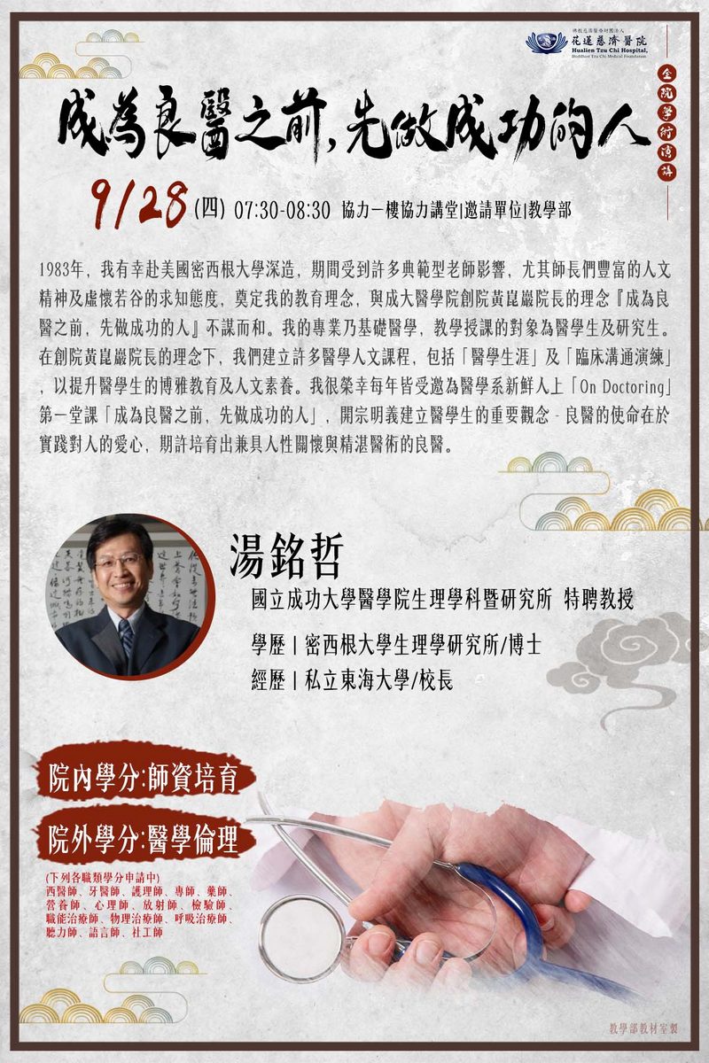 112/9/28(四) 全院學術演講-成為良醫之前,先做成功的人-湯銘哲校長