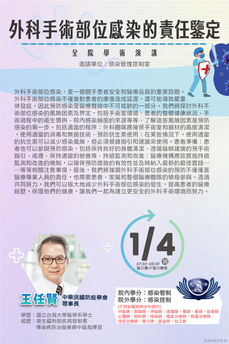 113.01.04 全院學術演講-外科手術部位感染責任鑑定-王任賢理事長