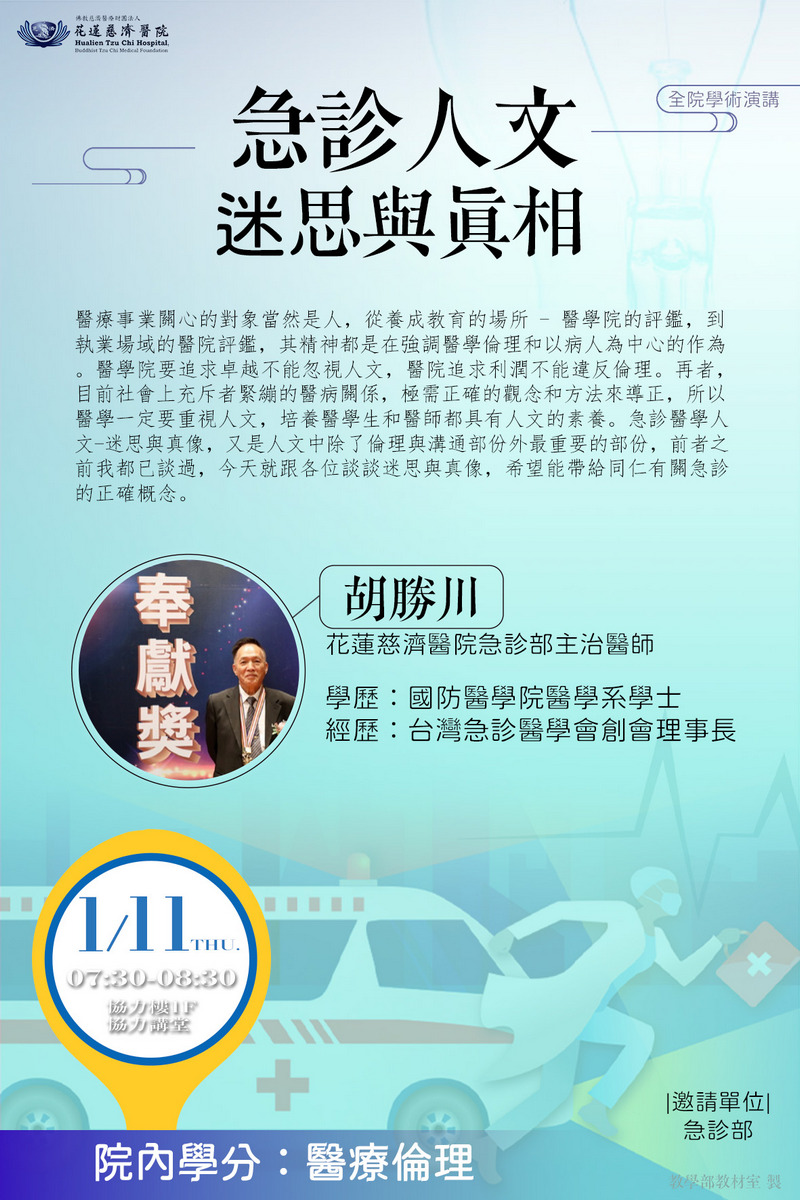 113.01.11 全院學術演講-急診人文迷思與真相-胡勝川主任