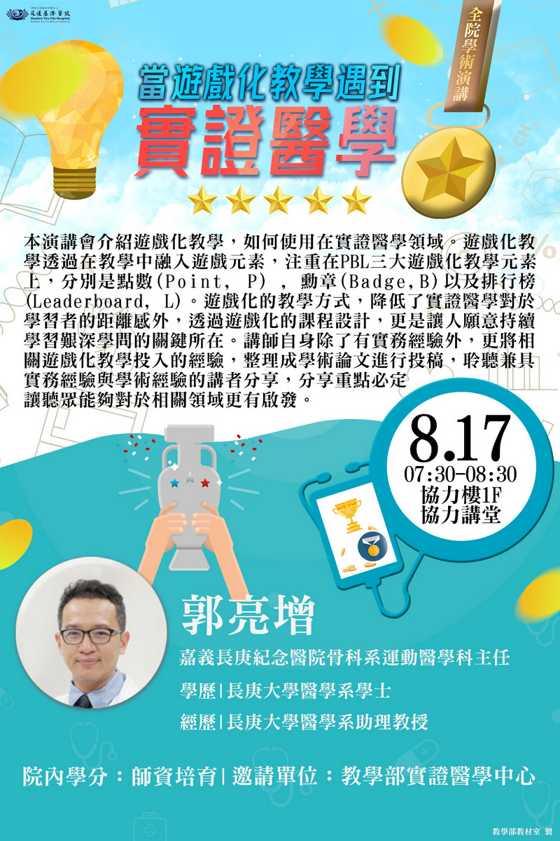 112/8/17(四) 全院學術演講-當遊戲化教學遇到實證醫學-郭亮增主任