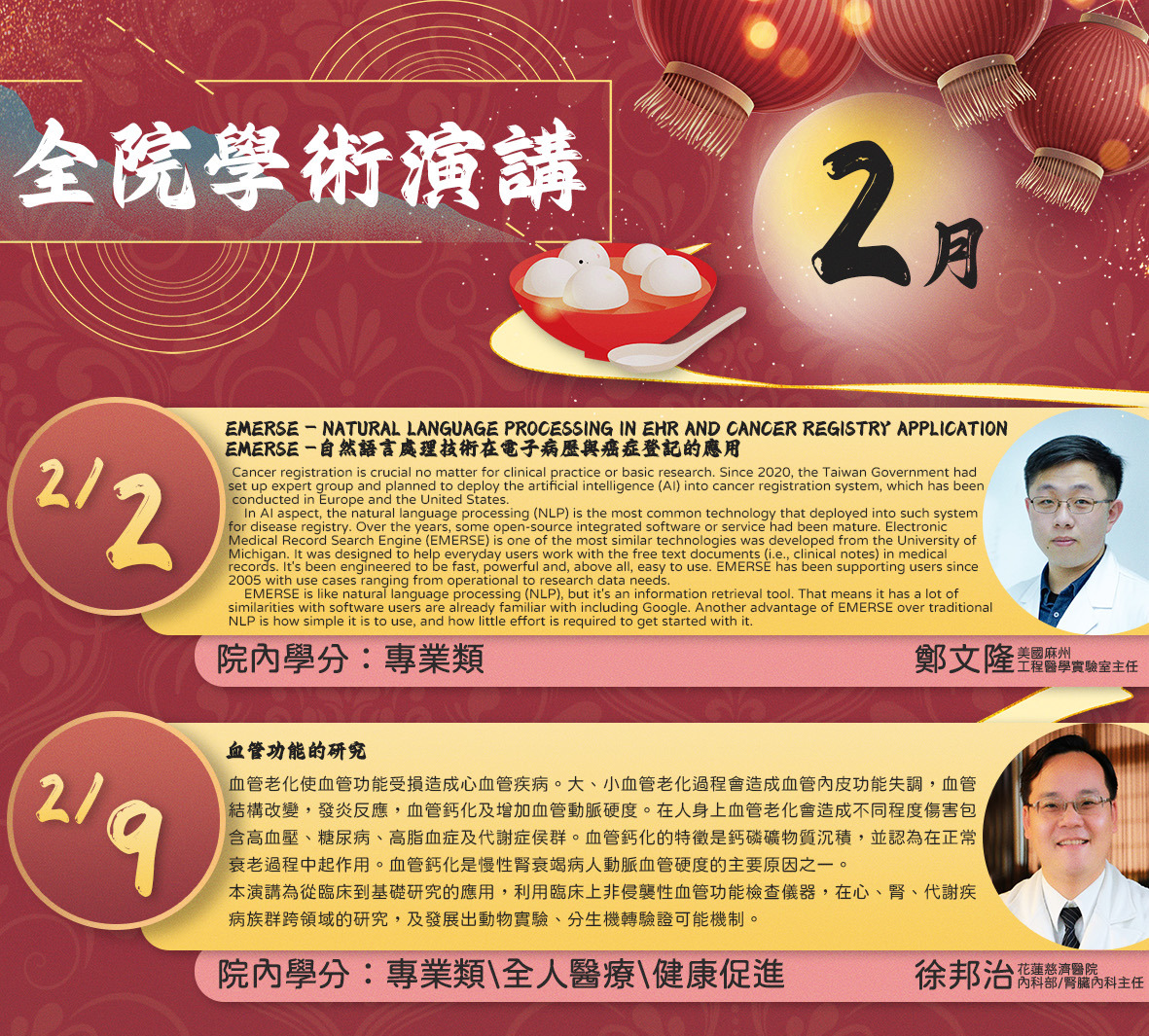 112/02/02(四)全院學術演講-EMERSE – Natural Language Processing in EHR and Cancer Registry Application EMERSE –自然語言處理技術在電子病歷與癌症登記的應用-鄭文隆主任