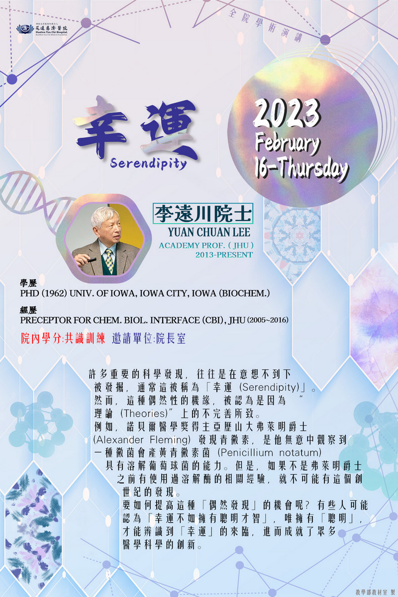 112/02/16(四)全院學術演講-幸運(Serendipity)-李遠川院士