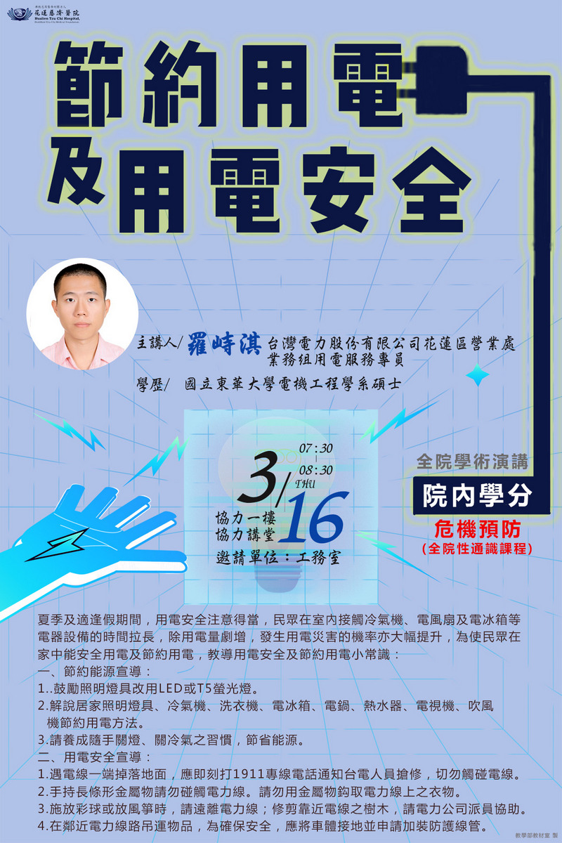 112/03/16(四)全院學術演講-節約用電及用電安全-羅峙淇專員