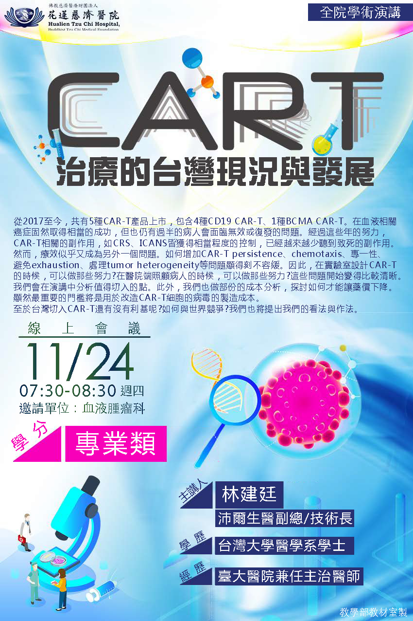 11/24(四)全院學術演講-CAR-T治療的台灣現況與發展-林建廷副總